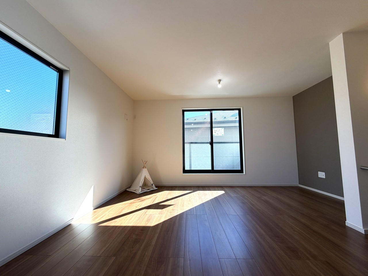 3号棟 将来的には間仕切りして2部屋に変更可能な洋間。成長に合わせた間取り変更が可能なタイプ。 2026/02/09m
