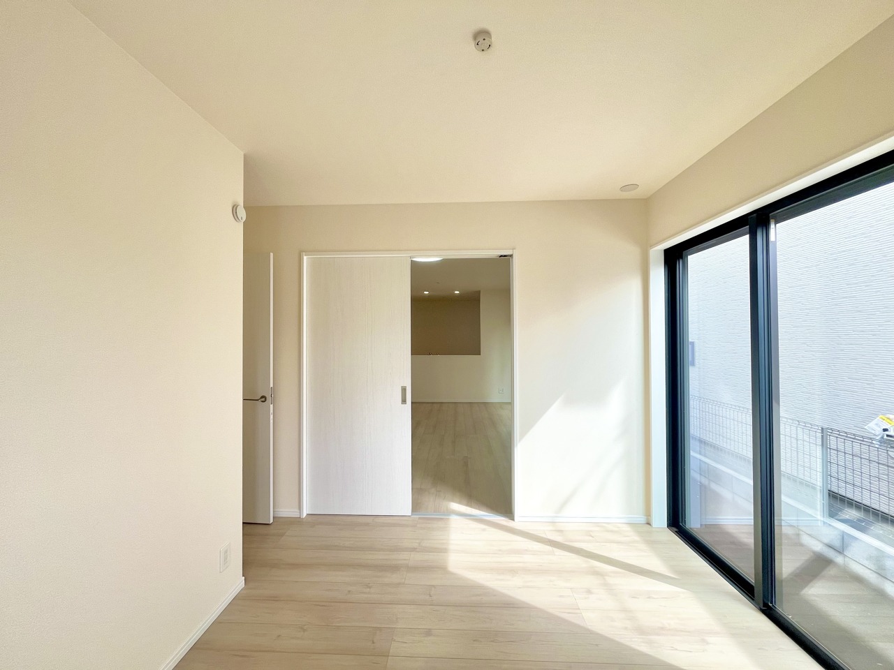 バルコニーに面した7.25帖の洋室。開口部からは優しい陽光が差し込み心地よい風が通り抜けます。