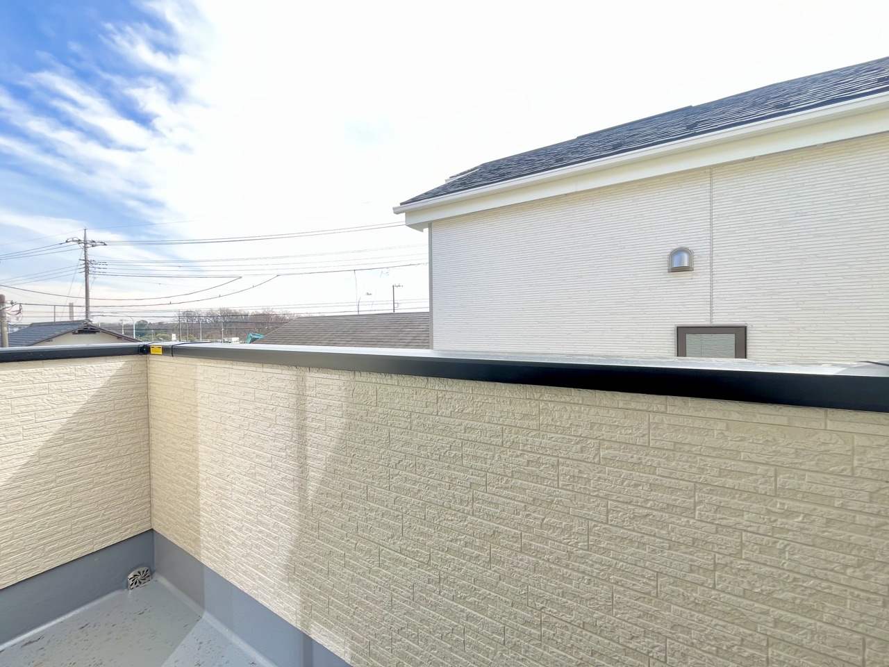 陽ざしが差込む明るいバルコニー。奥行きのあるバルコニーはお洗濯時に助かります。