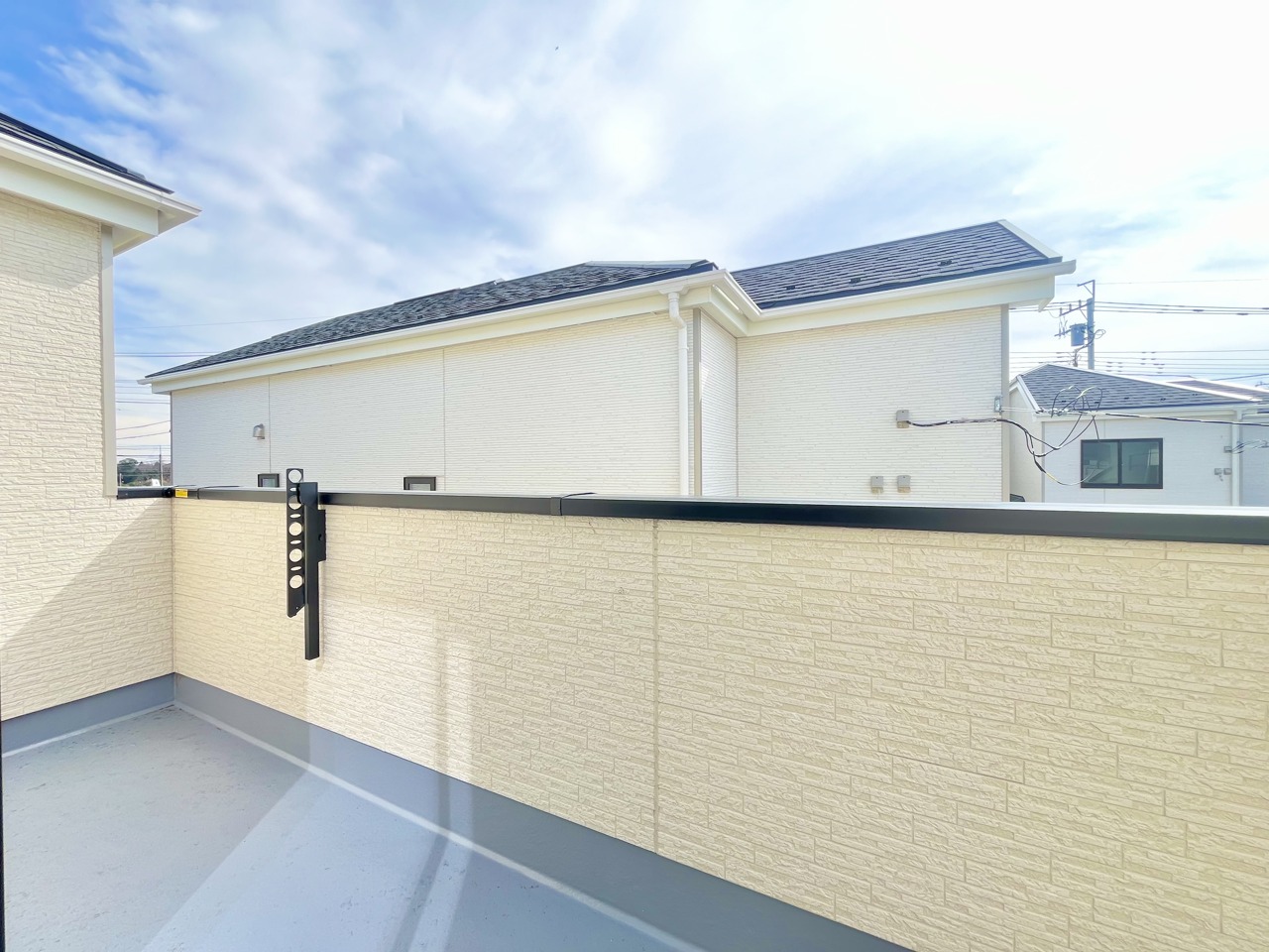 南側のお部屋から出入りできる、奥行きのあるワイドバルコニー。心地よい陽射しと暖かな風を楽しむことが出来ます。