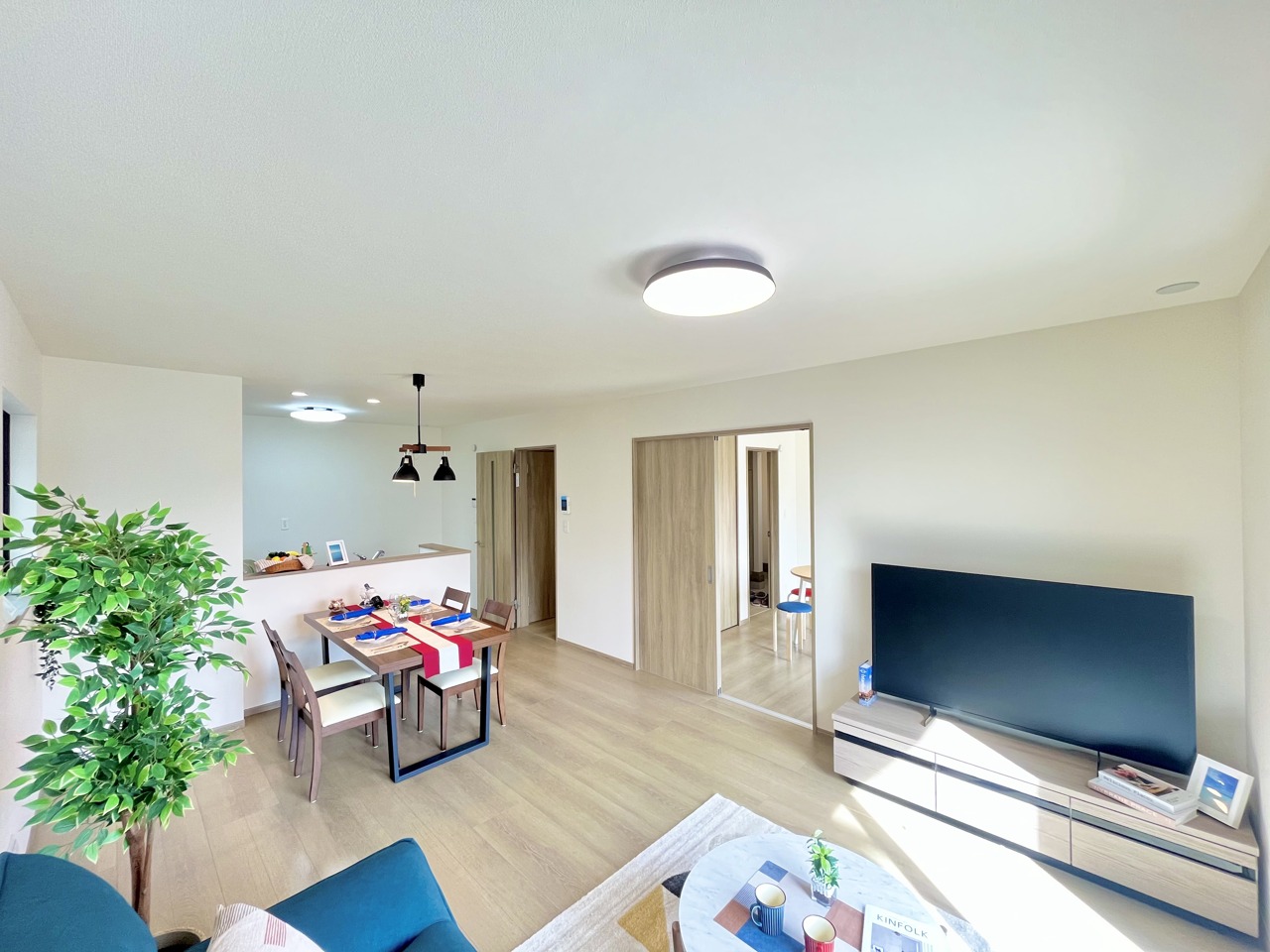 C号棟 家族団欒のリビング。陽光差し込む食卓には家族の会話とスマイルが溢れます。いつまでもここで食卓を囲みたくなる、そう感じさせてくれるスペース。 2026/02/27m