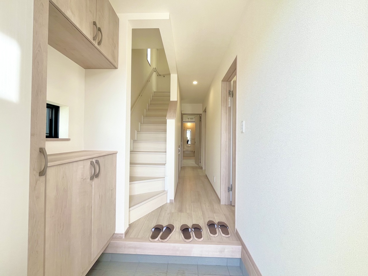 C号棟 明るく開放的な玄関、靴の脱ぎ履きもしやすく、収納も豊富でご家族皆様の靴をスッキリ収納できます。 2026/02/27m