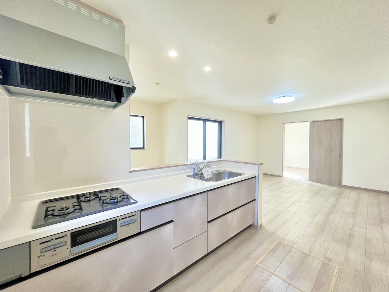 C号棟 キッチンはオープンカフェスタイルだからリビングとの一体感はバッチリ。毎日のお料理時間も楽しくなりそうです。 2026/02/27m