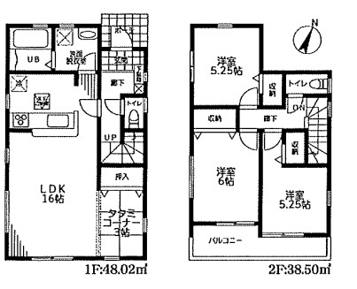 | 間取 | 4LDK (LDK16帖、和室3帖、洋室6帖、洋室5.25帖、洋室5.25帖) | ||