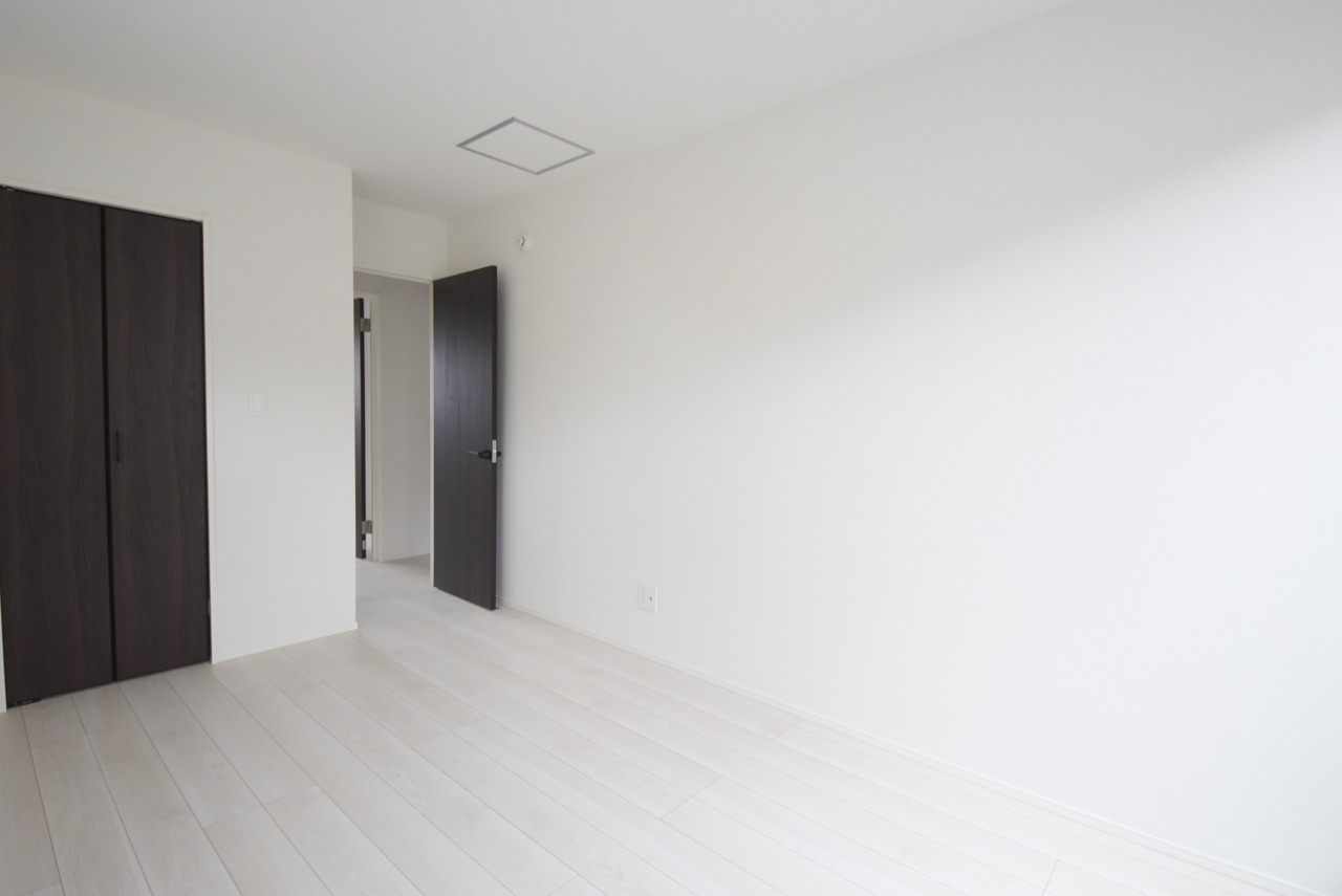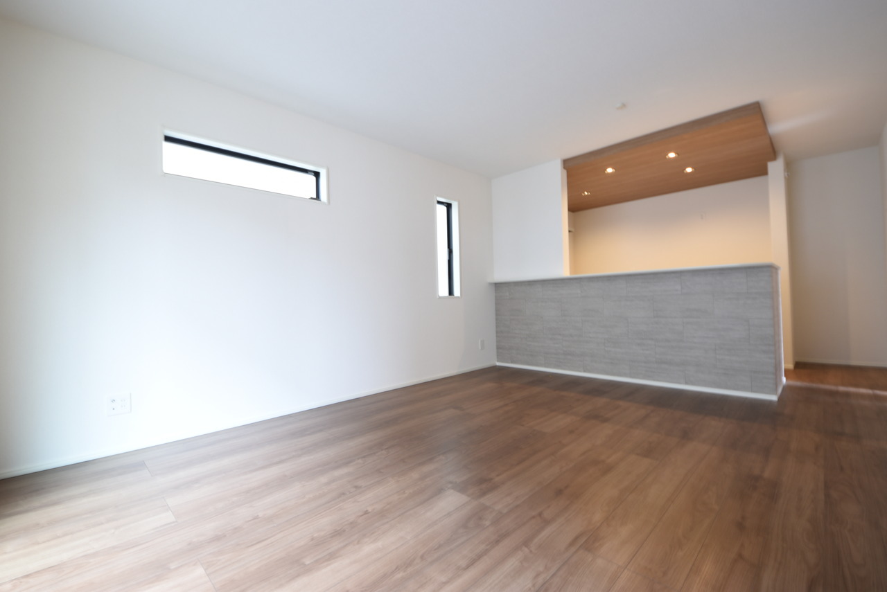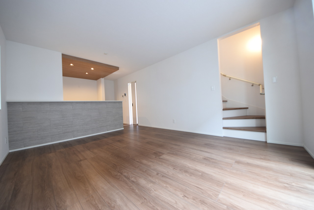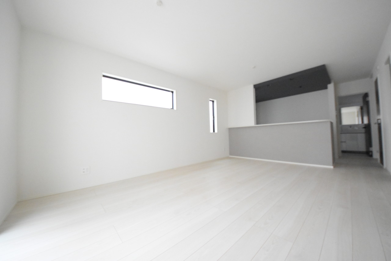 1号棟 どんな家具にでも相性が良い清潔感ある白色調のクロスを採用。主張しすぎない配色、耐久性にも優れた床材は日々のメンテナンスも楽に、快適に過ごして頂けるよう考えられています。 2026/03/20m