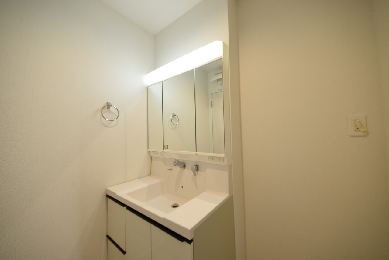 1号棟 お出かけ前の身だしなみに一歩差がつく三面鏡。ミラー裏にはたっぷり収納もございます。 2026/03/20m