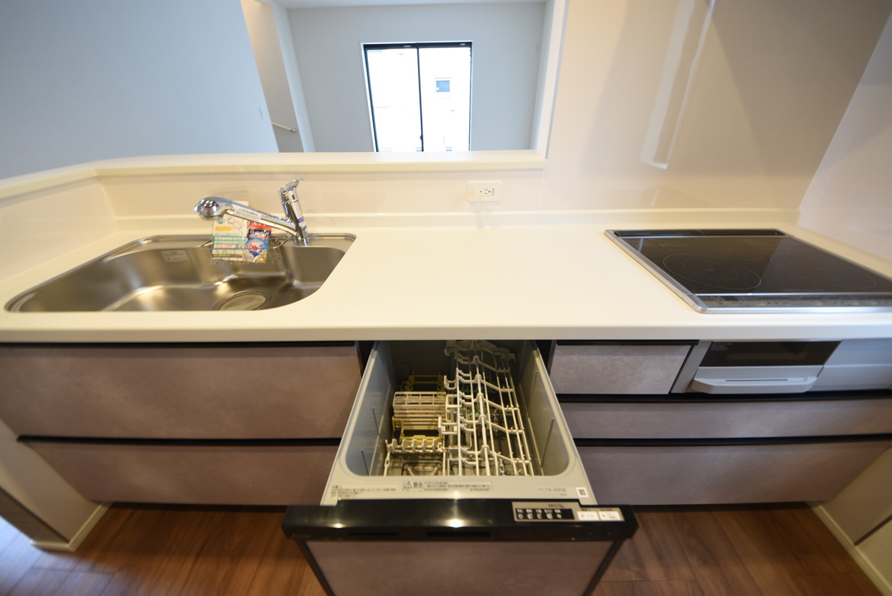 2号棟 時短に活躍する食器洗浄機や一杯の水も楽しめる浄水器があるシステムキッチン。 IHクッキング。 2026/03/20m
