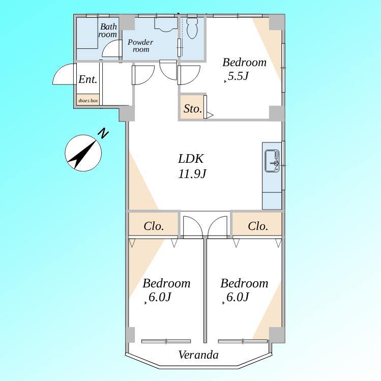 | 間取 | 3LDK (LDK11.9帖、洋室6帖、洋室6帖、洋室5.5帖) | ||