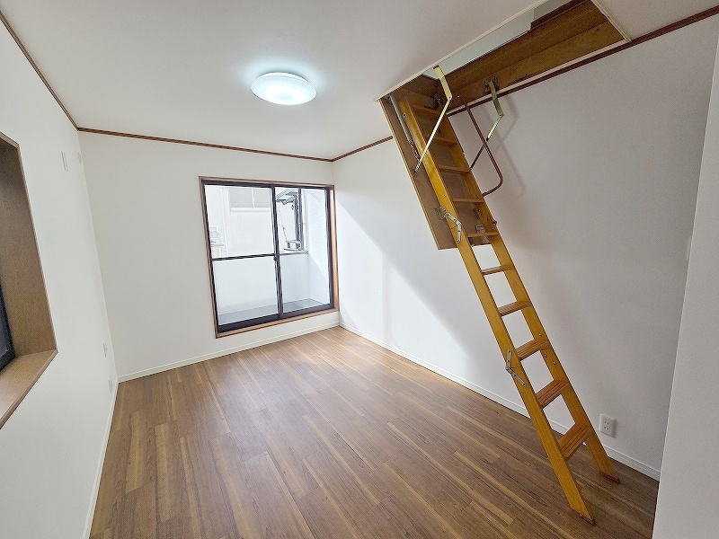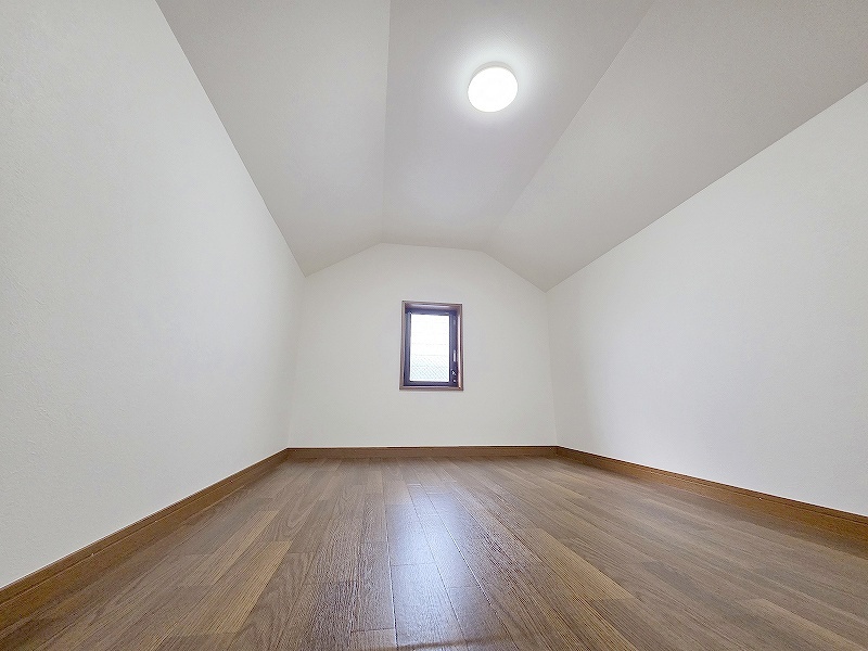 大きな屋根裏部屋はなんだかワクワクしてしまうスペース。季節物の収納など色々な用途に利用できそうな予感。