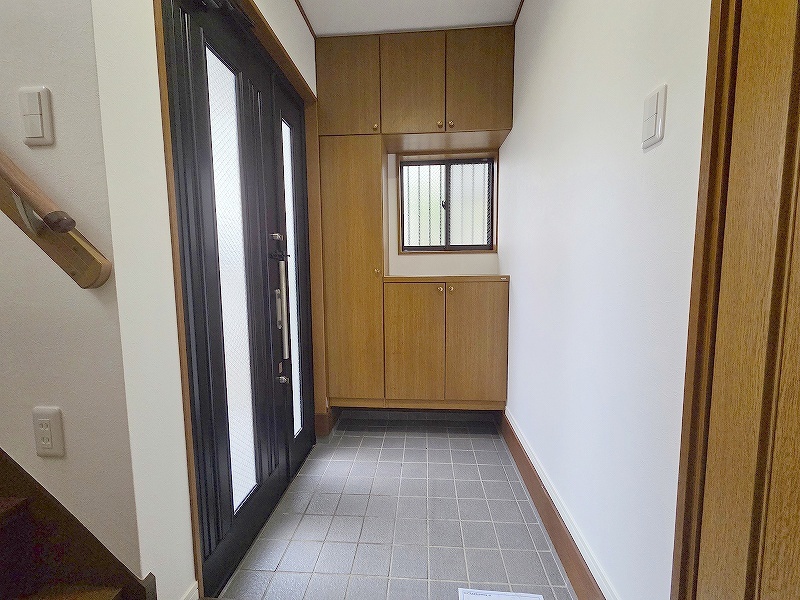 玄関は家の第一印象を左右する重要な場所。ほどよい広さとスタイリッシュな色遣いが印象的です。