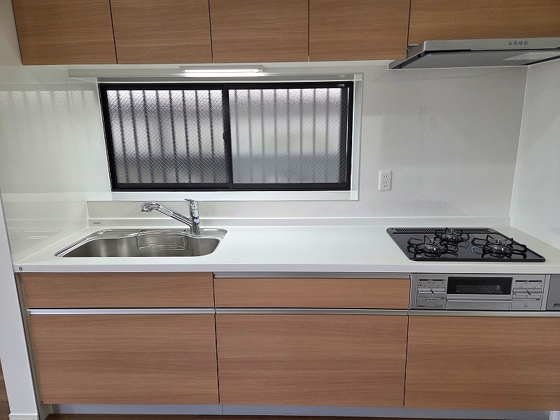 キッチンは、カウンターや壁付けタイプ、アイランドタイプ様々なパターンが御座います。 お好みも分かれる所ではありますが、壁付け対応は閉鎖的にならずに明るいキッチンスペースとしてご希望を頂く事も多いタイプ。