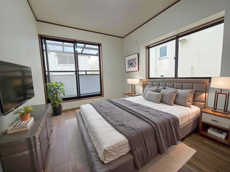 洋室はモダンなデザインと機能性を備え、快適な生活空間に。明るい窓から差し込む自然光が広々とした空間をさらに明るく開放的に感じさせます。