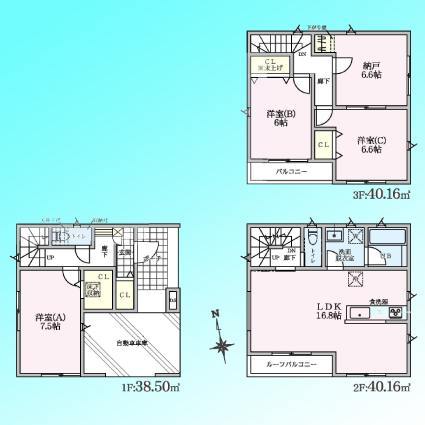 | 間取 | 3SLDK~3SLDK (LDK16.8帖、洋室7.5帖、洋室6.6帖、洋室6帖、S6.6帖) | ||