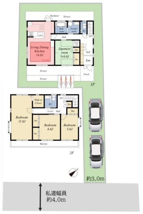 | 権利種類 | 所有権 | 接道 | 南東側4M私道に3M接道 |