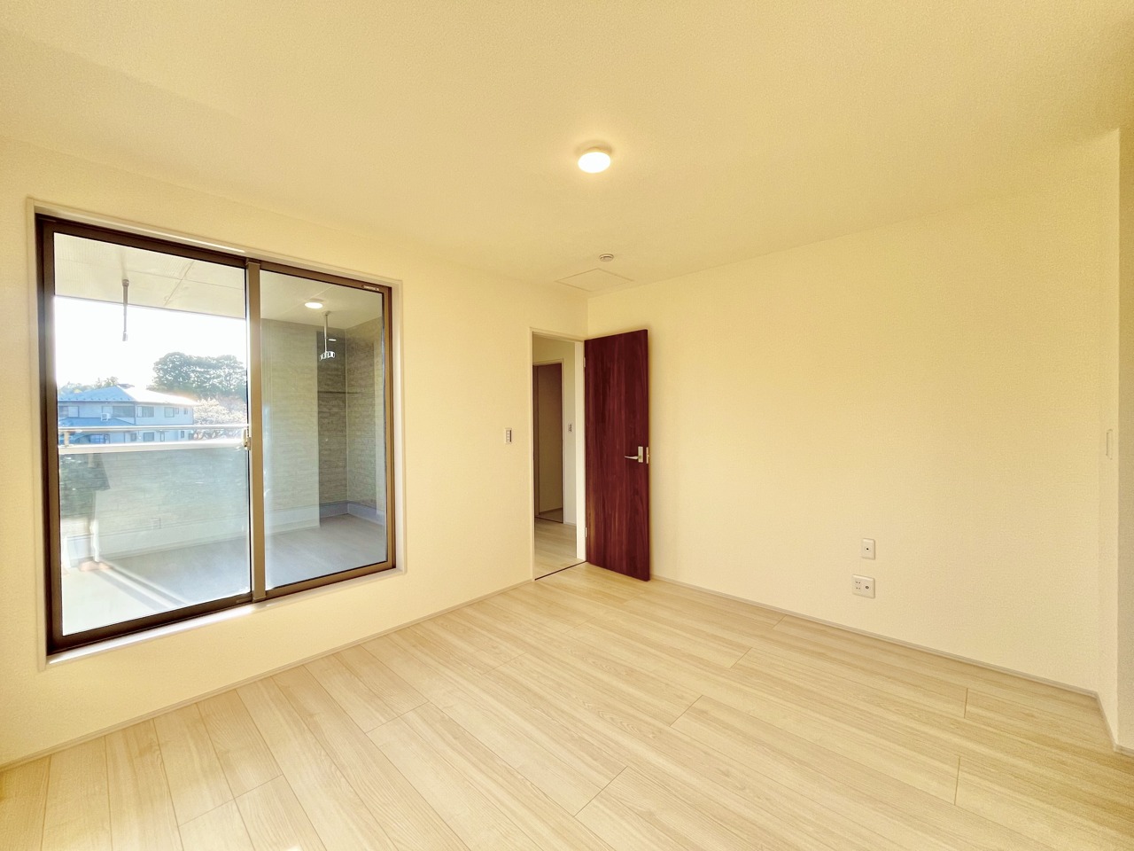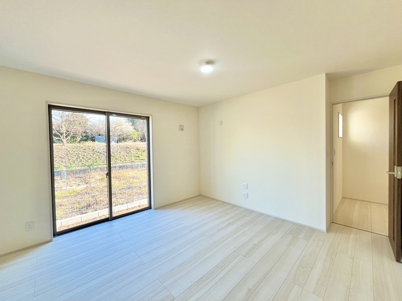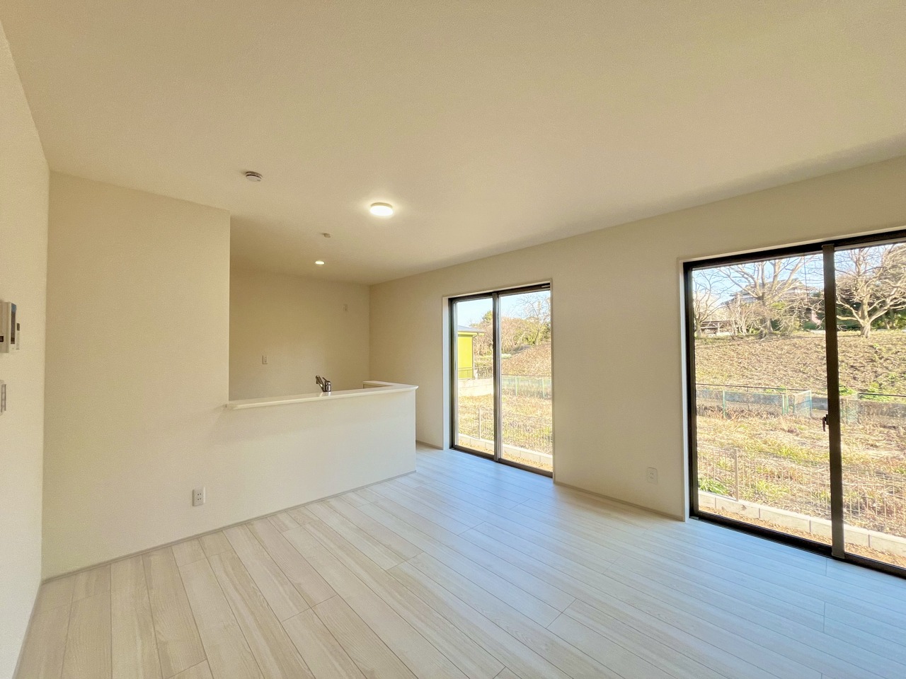 大きな開口部から明るい光が差し込む、日中の室内の明るさがこの部屋の魅力です。