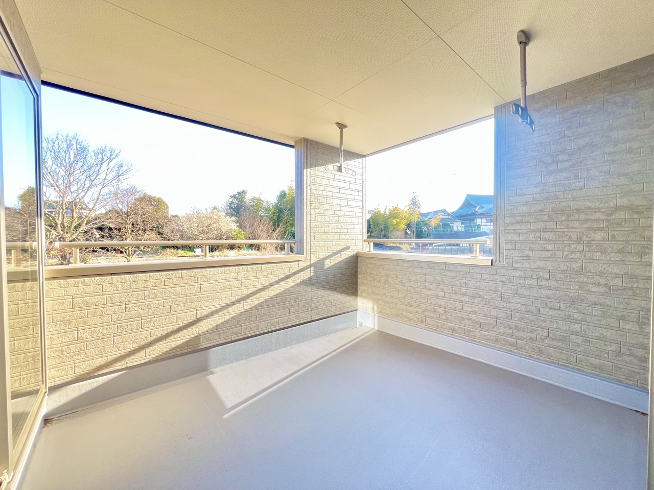 プライバシーを確保しやすい広々としたインナーバルコニー。雨天時でも洗濯物が濡れることなく安心です。
