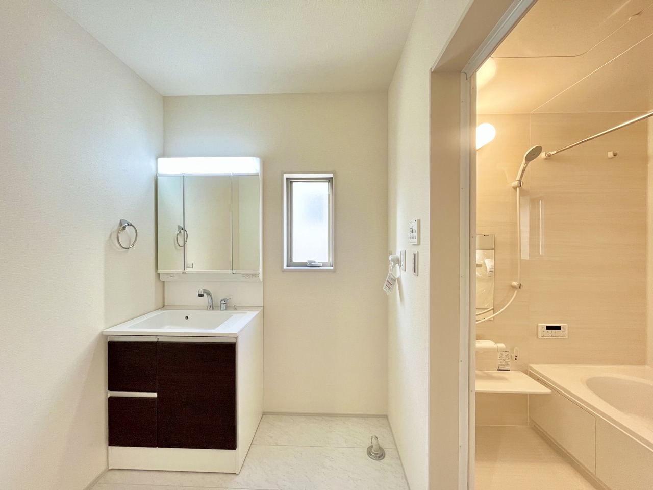 使い勝手の良い洗面台、窓があることで換気もしやすく清潔感のある空間を保てます。