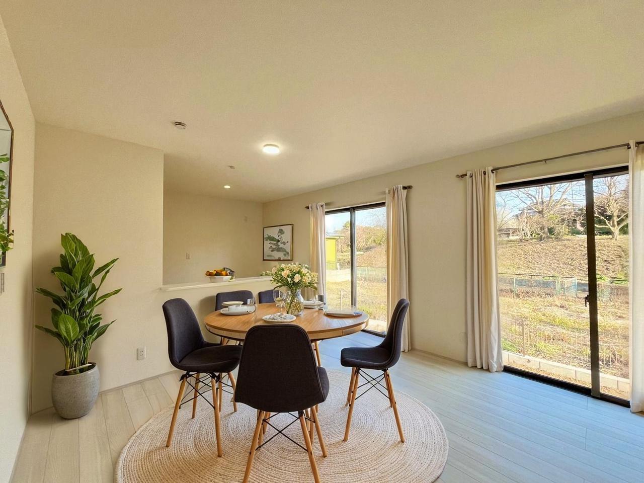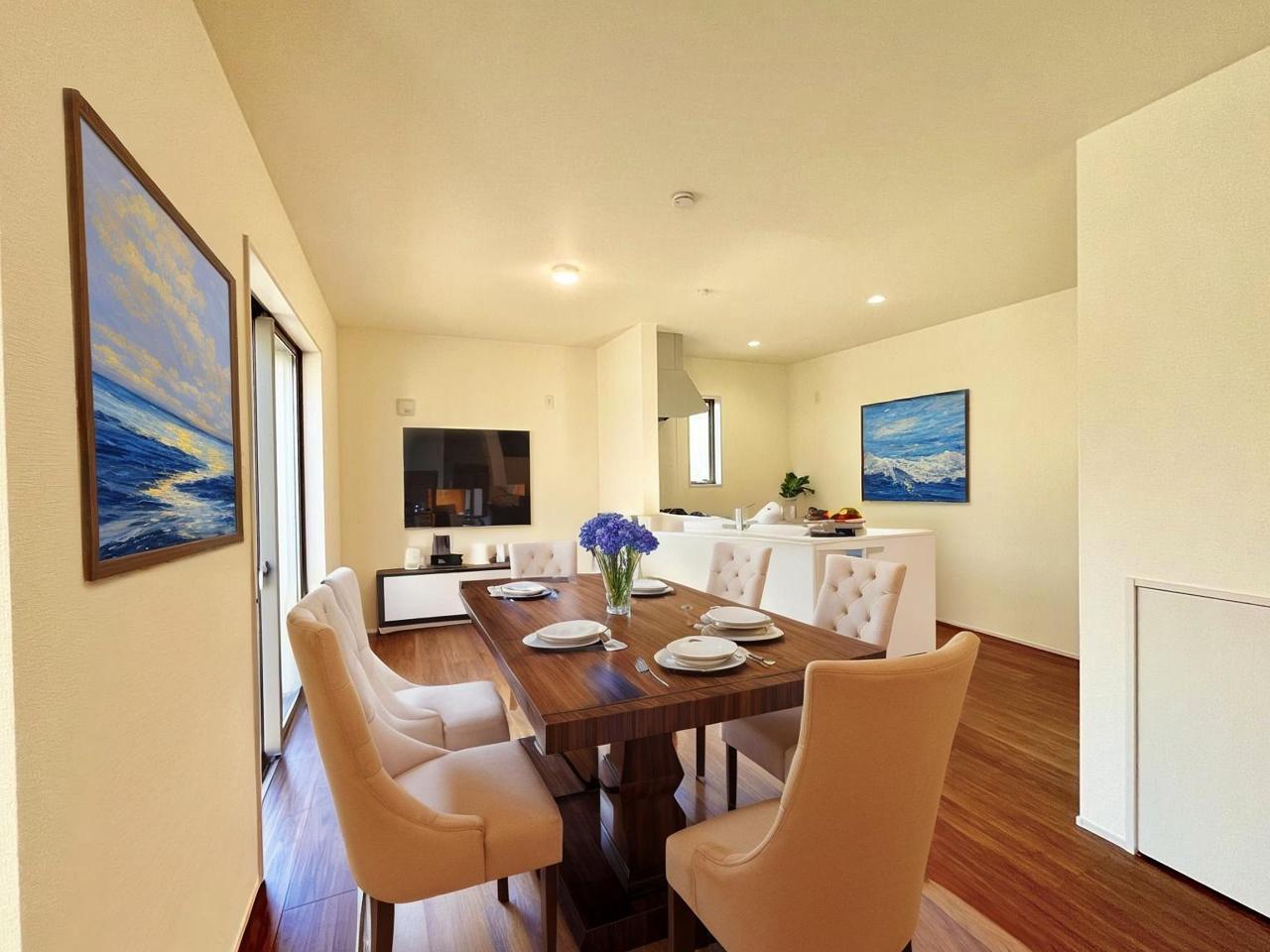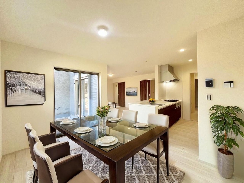 2号棟 家族団欒のリビング。陽光差し込む食卓には家族の会話とスマイルが溢れます。いつまでもここで食卓を囲みたくなる、そう感じさせてくれるスペース。 2026/02/22m