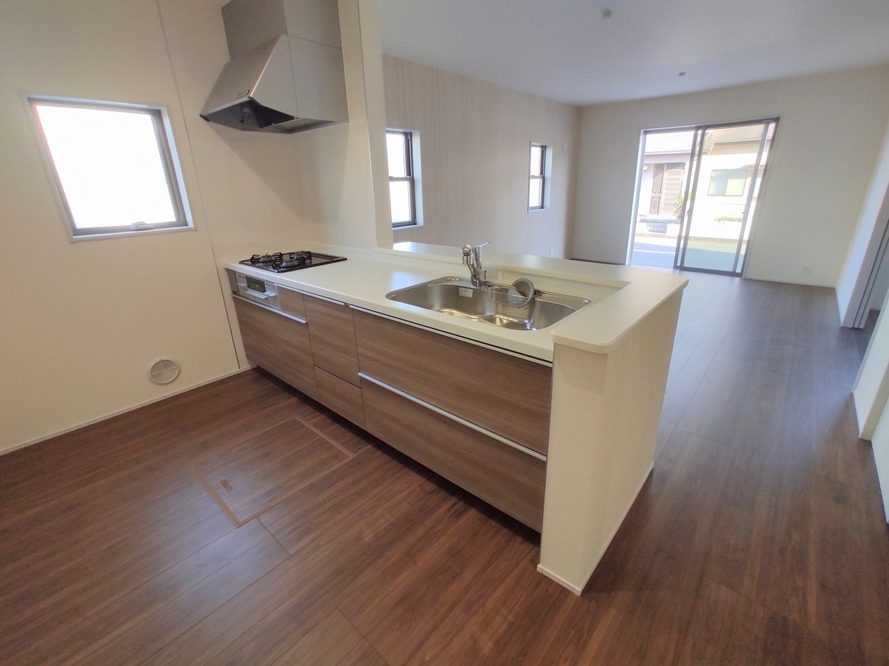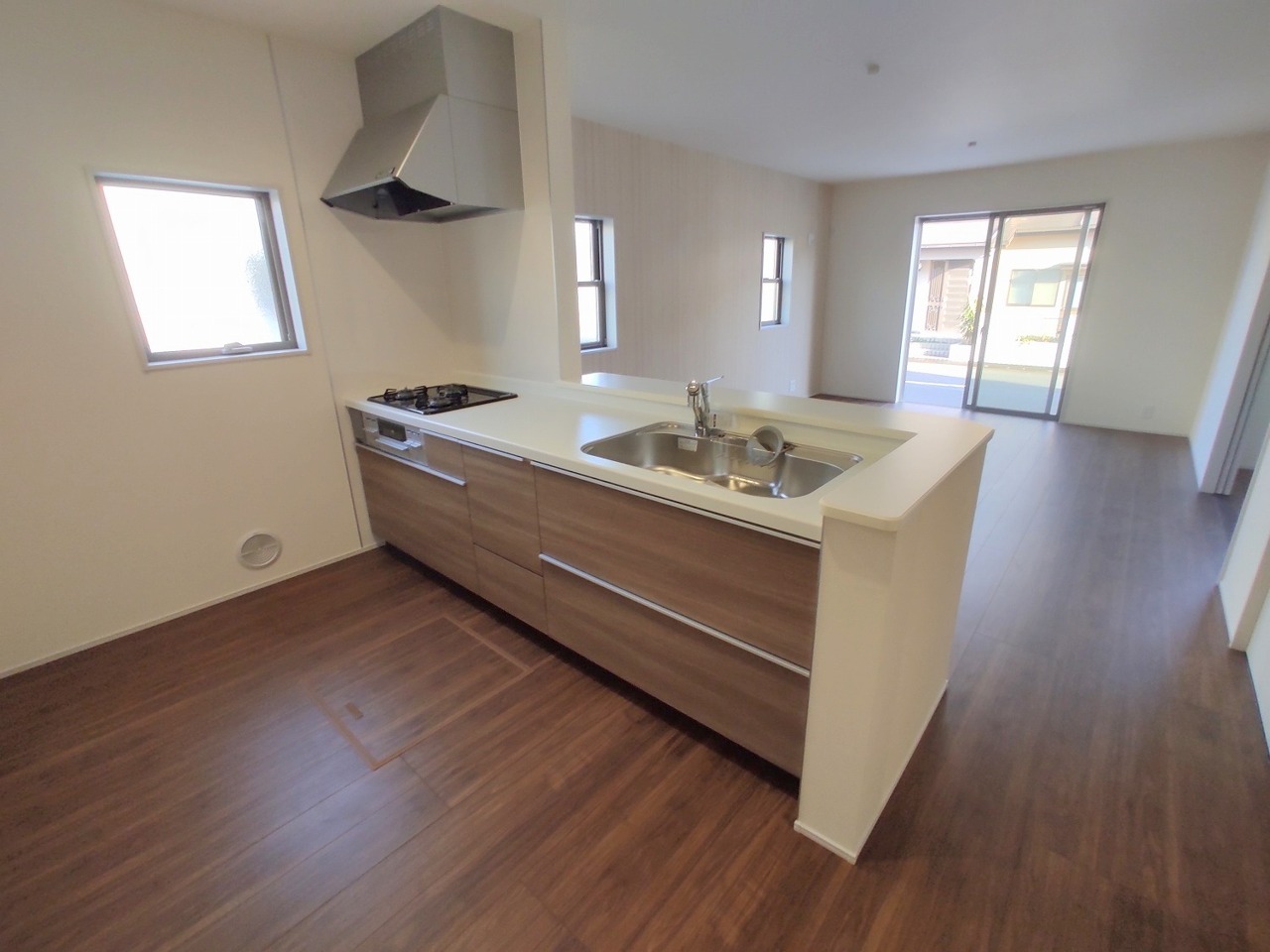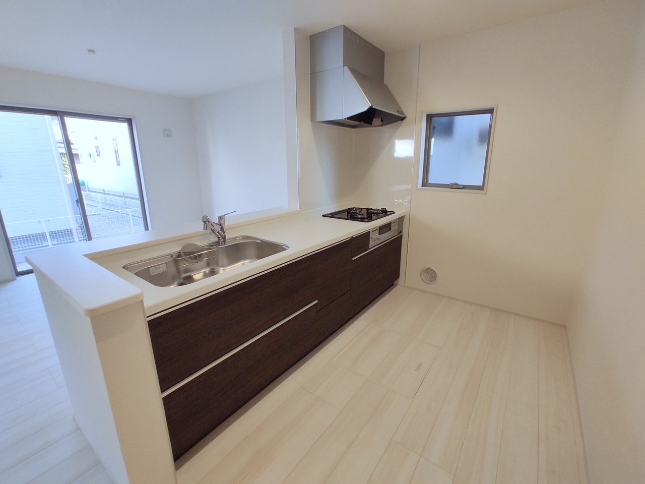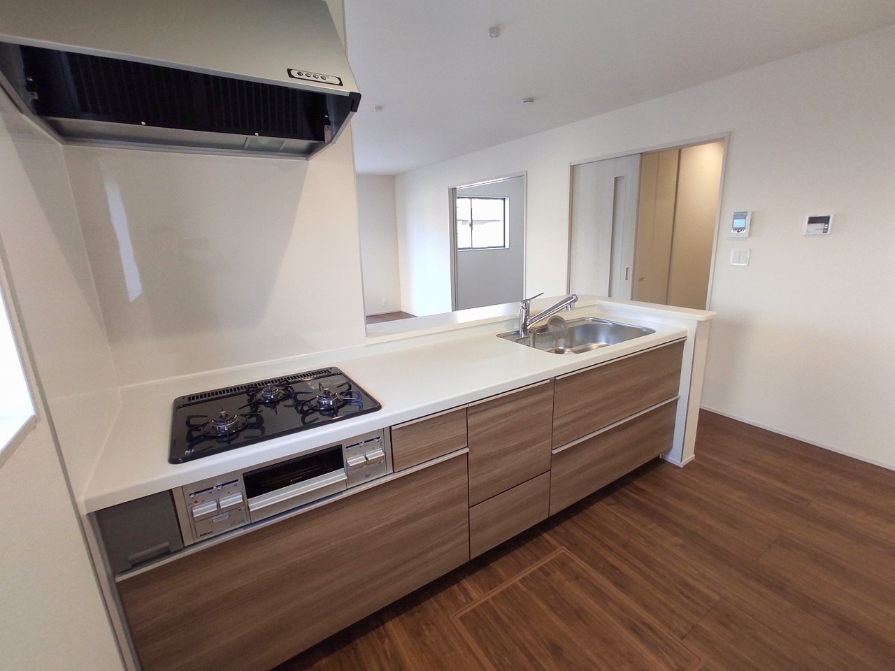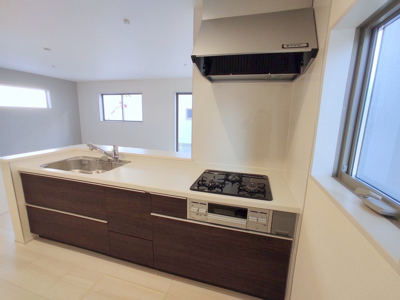 1号棟 吊戸棚で視界を遮らず、パノラマ感を重視したタイプのキッチンスペース。 2026/03/05m