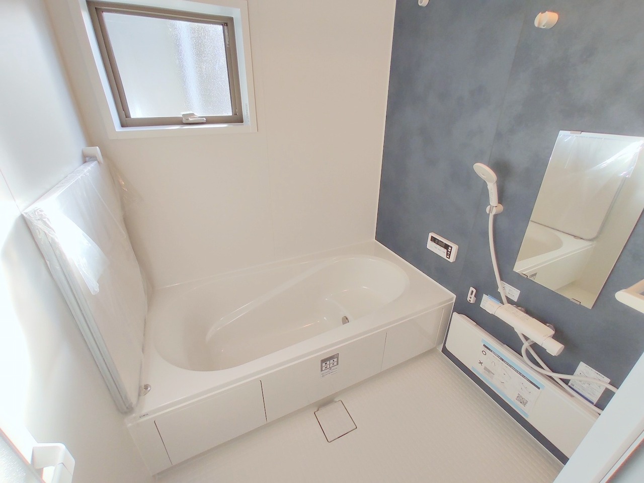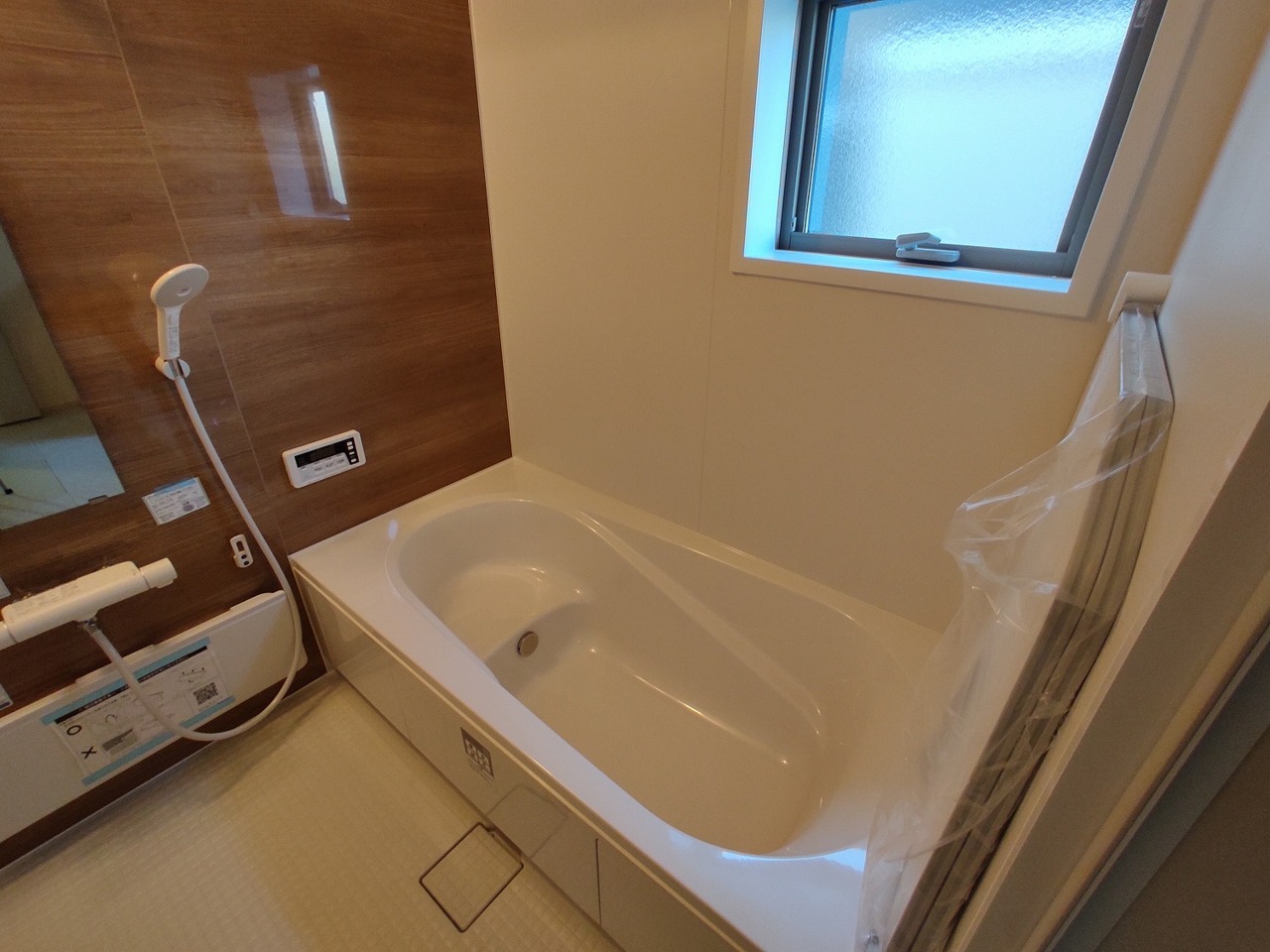 2号棟 広々1坪タイプのゆったり浴室ユニットは半身浴もゆっくり楽しめるベンチバス仕様。防カビ・抗菌素材なのもうれしい。