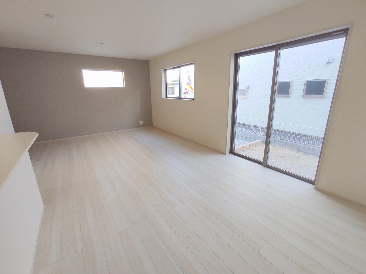 1号棟 大画面TVの配置も可能なワイドリビングは約20帖。 2026/03/05m