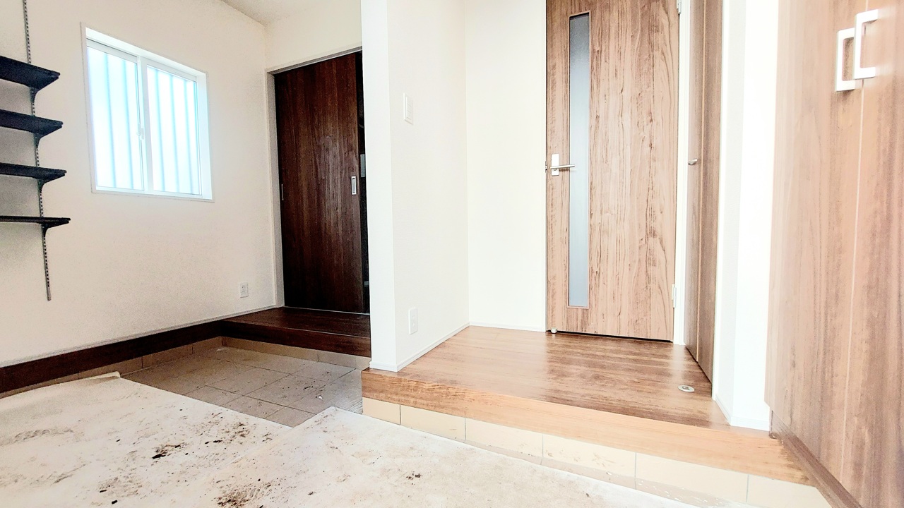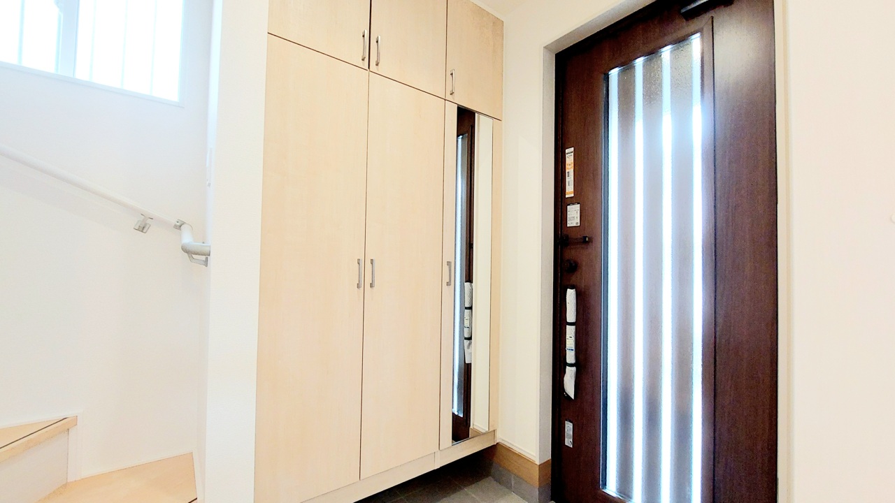 1号棟 明るく開放的な玄関、靴の脱ぎ履きもしやすく、収納も豊富でご家族皆様の靴をスッキリ収納できます。 2026/03/08m