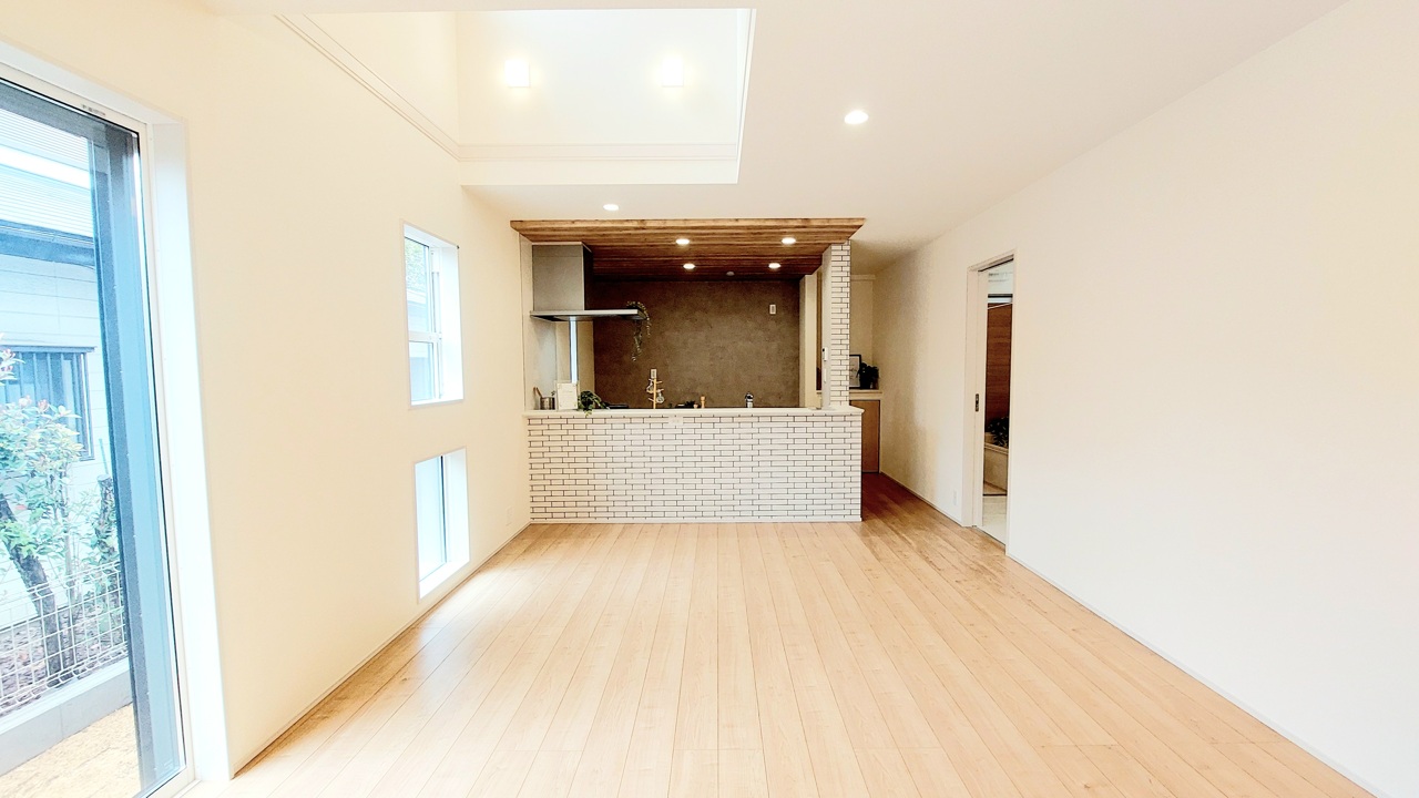 1号棟 家族の集うリビングには色々な方向から光が差し込む設計に。家族のコミュニケーションが弾むスポットだから明るい雰囲気であってほしい。 2026/03/08m