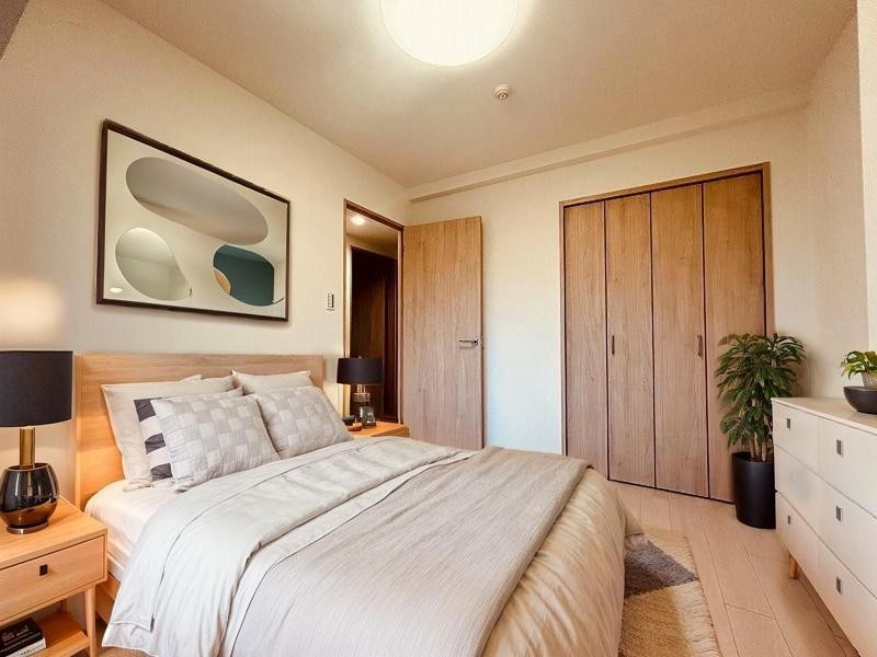 洋室はモダンなデザインと機能性を備え、快適な生活空間に。明るい窓から差し込む自然光が広々とした空間をさらに明るく開放的に感じさせます。