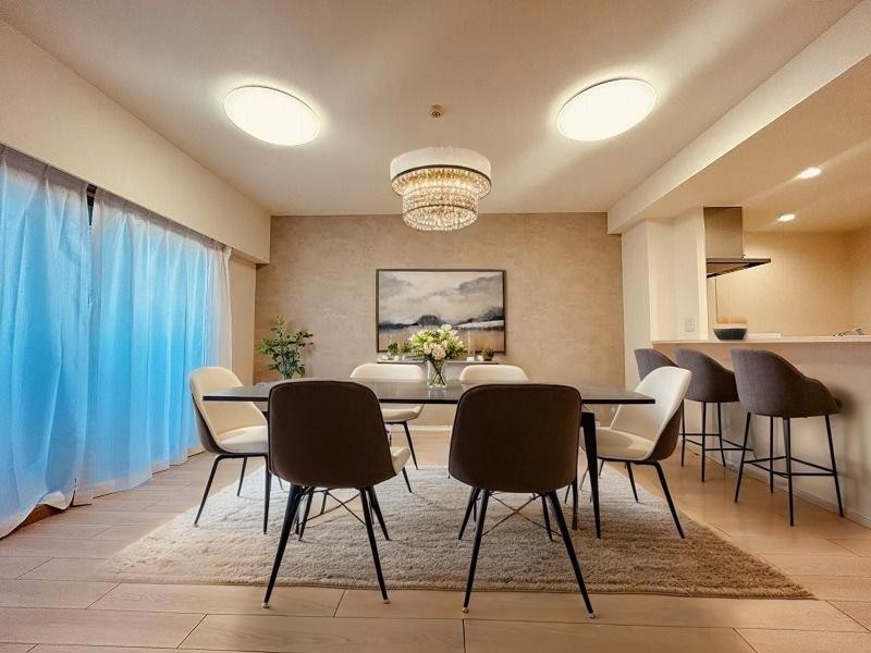 ゆとりのあるサイズのリビングダイニング。 お食事スペースと、お寛ぎ空間を分けてご利用可能。 少し大きめのソファーを置いて、 一家団欒なお時間をご共有ください。