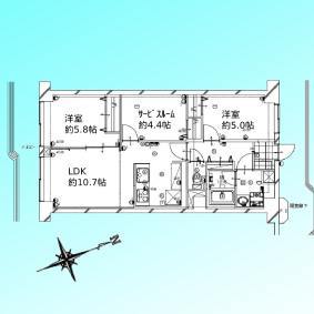 | 間取 | 2SLDK (LDK10.7帖、洋室5.8帖、洋室5帖、S4.4帖) | ||