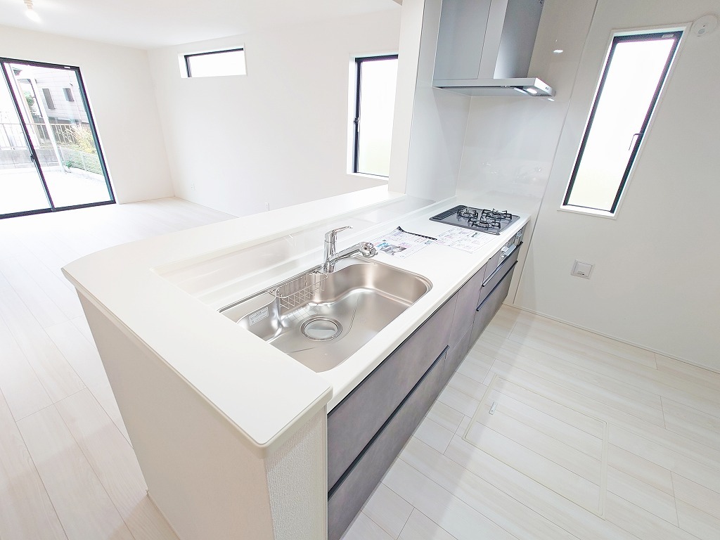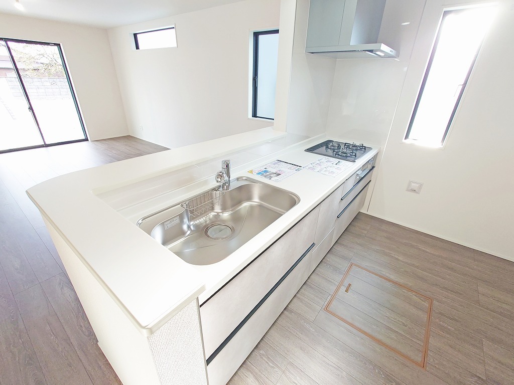 1号棟 対面キッチンがご家族の温かい時間を演出。