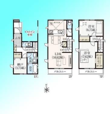 | 間取 | 2SLDK~2SLDK (S3.75帖、LDK16.62帖、洋室7.62帖、洋室6.75帖) | ||