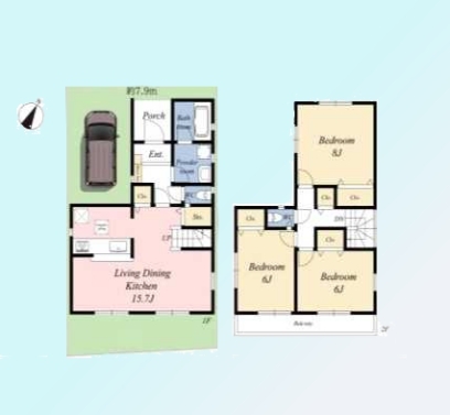 | 間取 | 3LDK (LDK15.7帖、洋室8帖、洋室6帖、洋室6帖) | ||