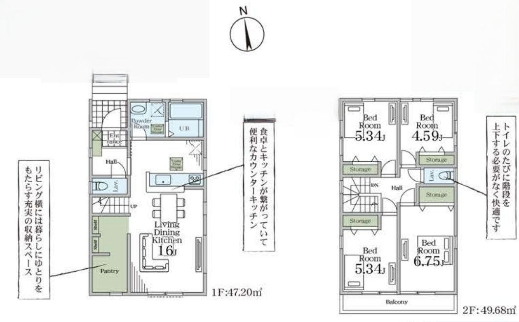 | 間取 | 4LDK (LDK16帖、洋室6.75帖、洋室5.34帖、洋室5.34帖、洋室4.59帖) | ||