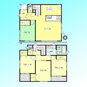 | 間取 | 4LDK (LD12.5帖、K6.48帖、洋室8.6帖、洋室5.3帖、洋室5.3帖、和室5帖) | ||