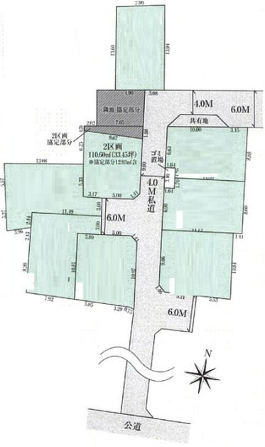 | 土地面積 | 110.6m² 公簿 (私道343.5m²別に有、私道持分比率:1/21、協定部分12.93平米含) | ||