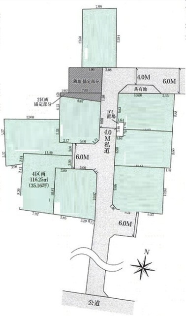 | 土地面積 | 116.25m² 公簿 (私道343.5m²別に有、私道持分比率:1/21) | ||