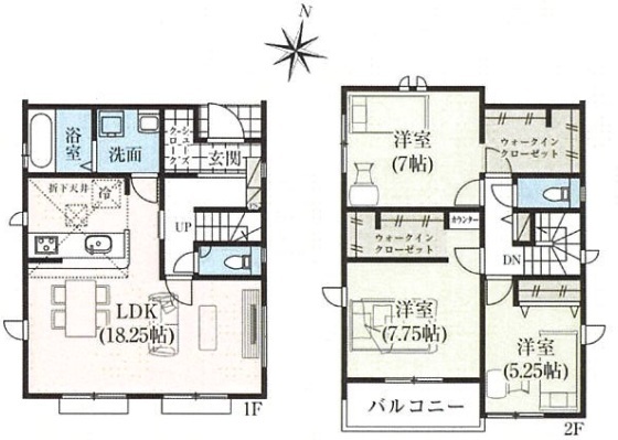 | 間取 | 3LDK (LDK18.25帖、洋室7.75帖、洋室7帖、洋室5.25帖) | ||