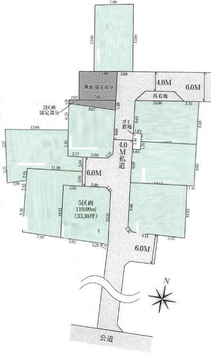 | 土地面積 | 110.09m² 公簿 (私道343.5m²別に有、私道持分比率:1/21) | ||