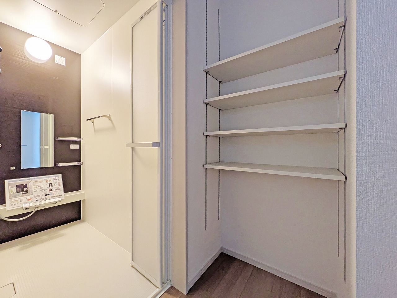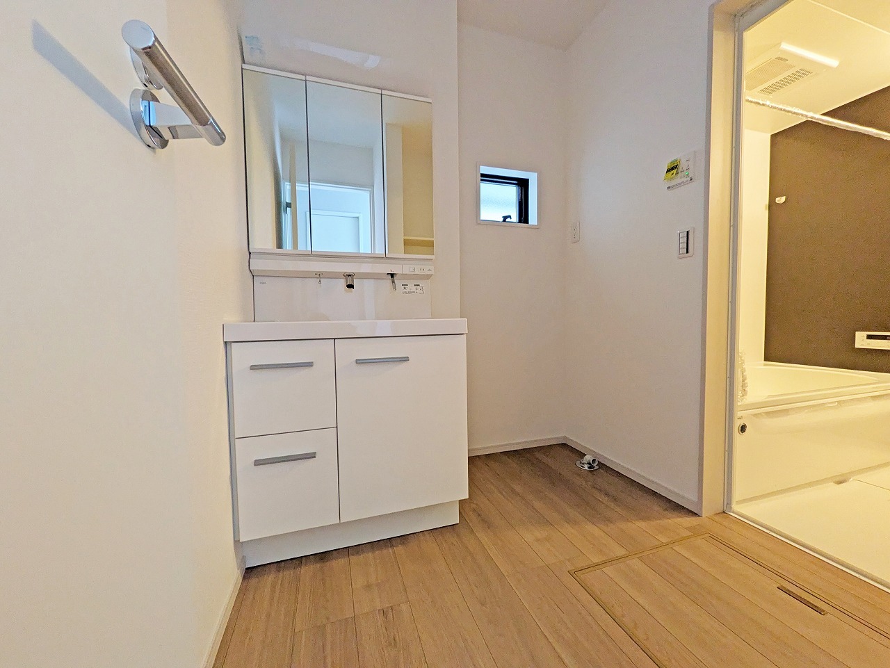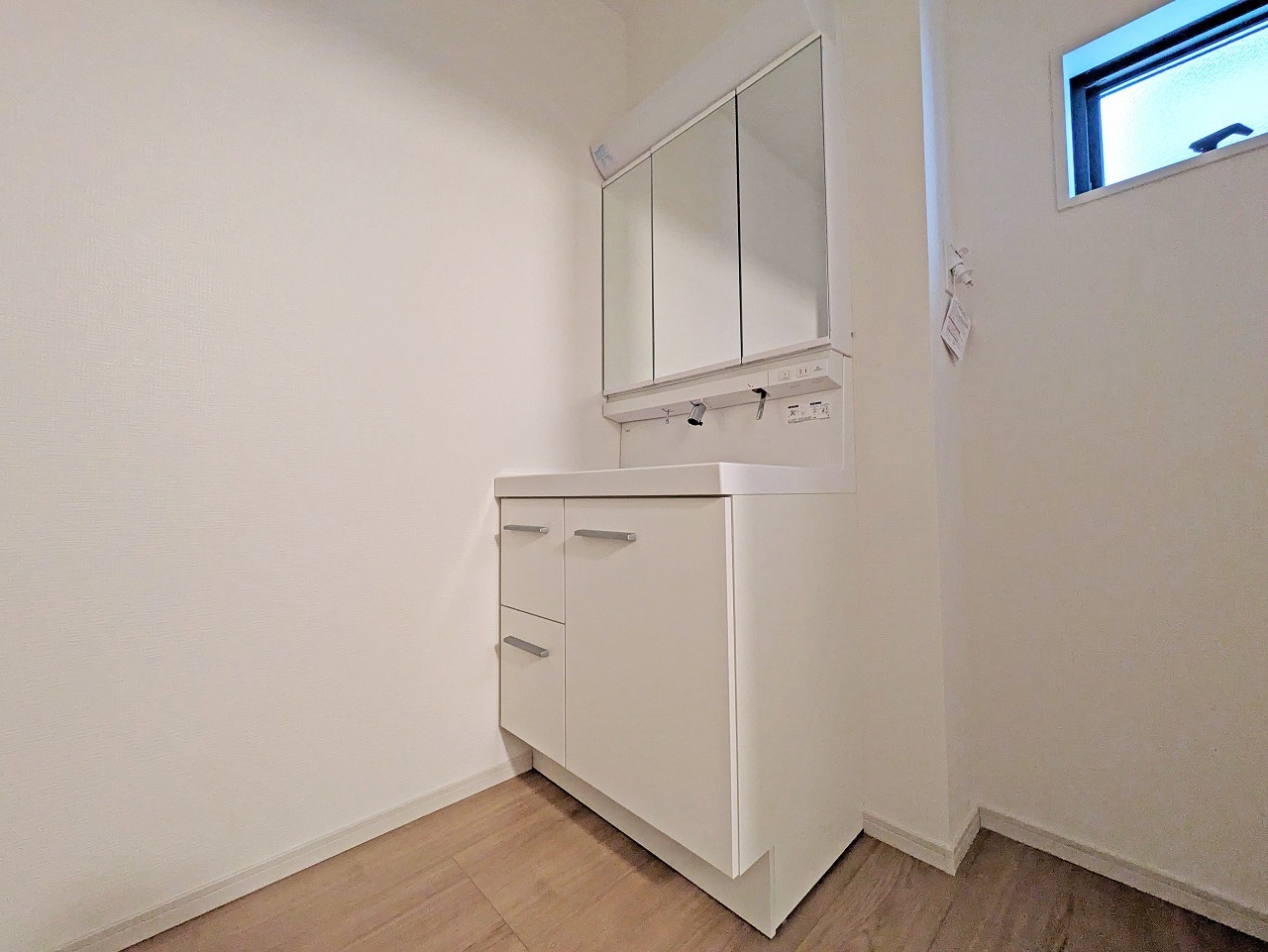 たっぷりの収納を設けたシャワー付洗面台で快適な暮らし。