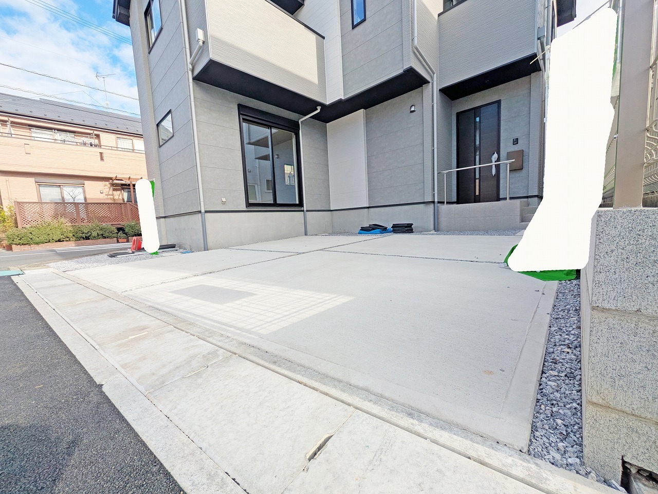 並列2台駐車可能な、ゆとりのカースペースがここに。