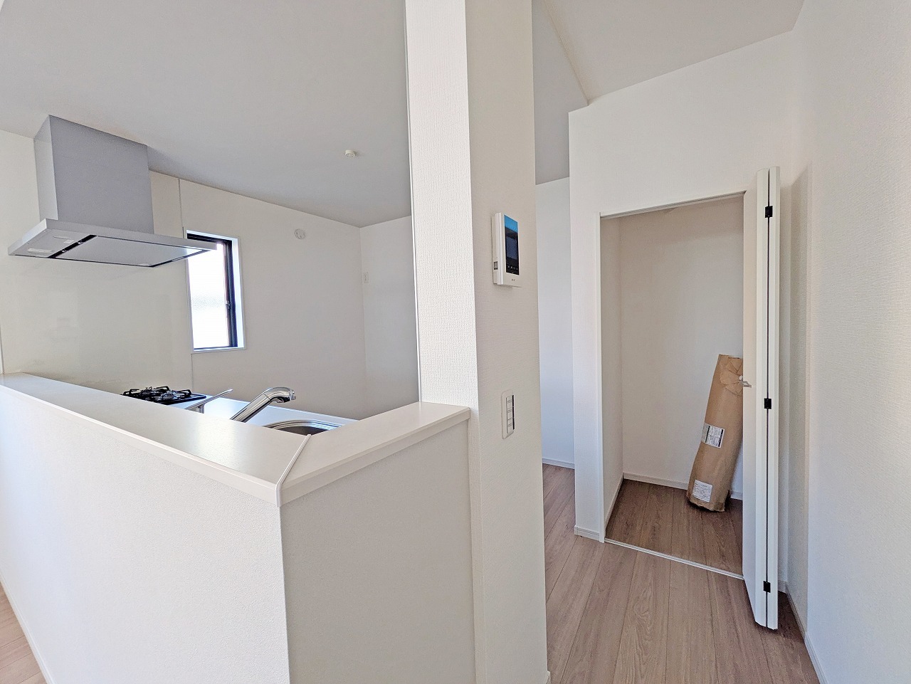 キッチンの脇に、この収納があるだけで、キッチン動線が変わりますね。