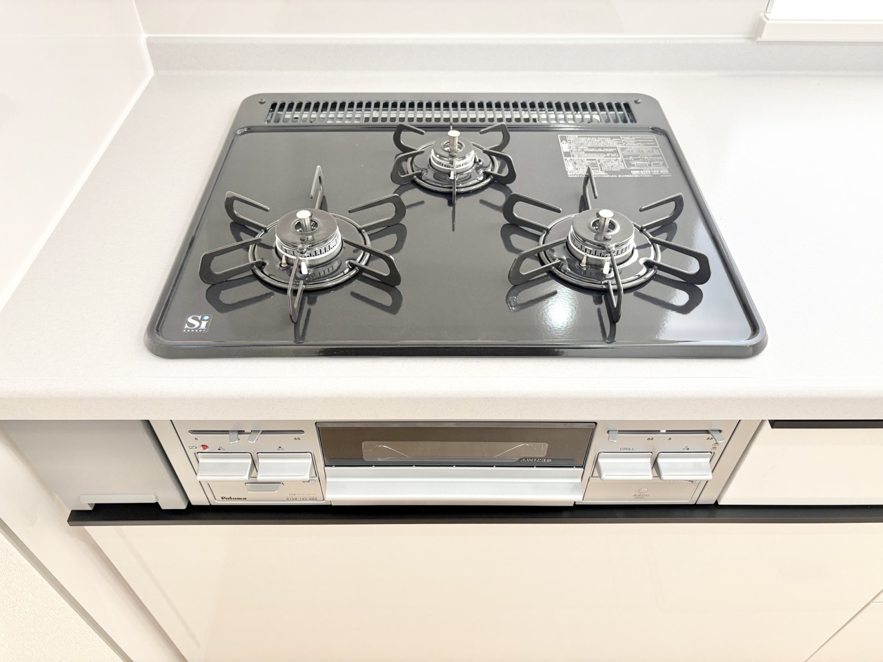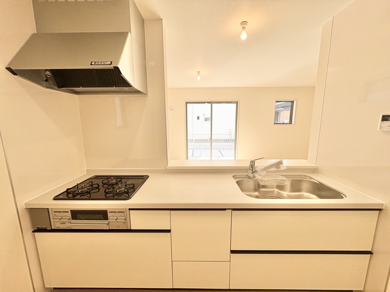 清潔感のある空間に、機能的なキッチンが整然と配置されています。
