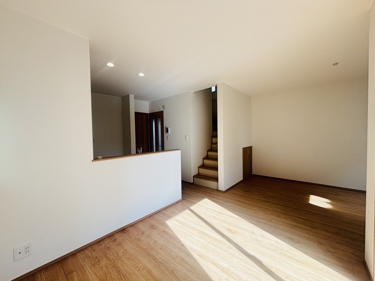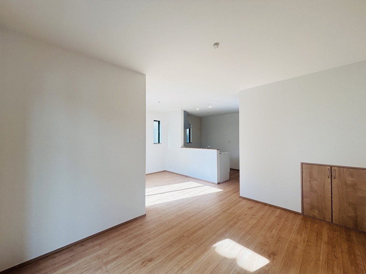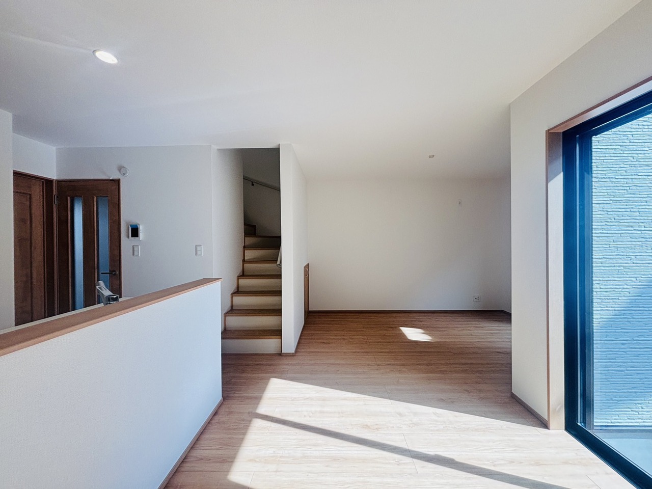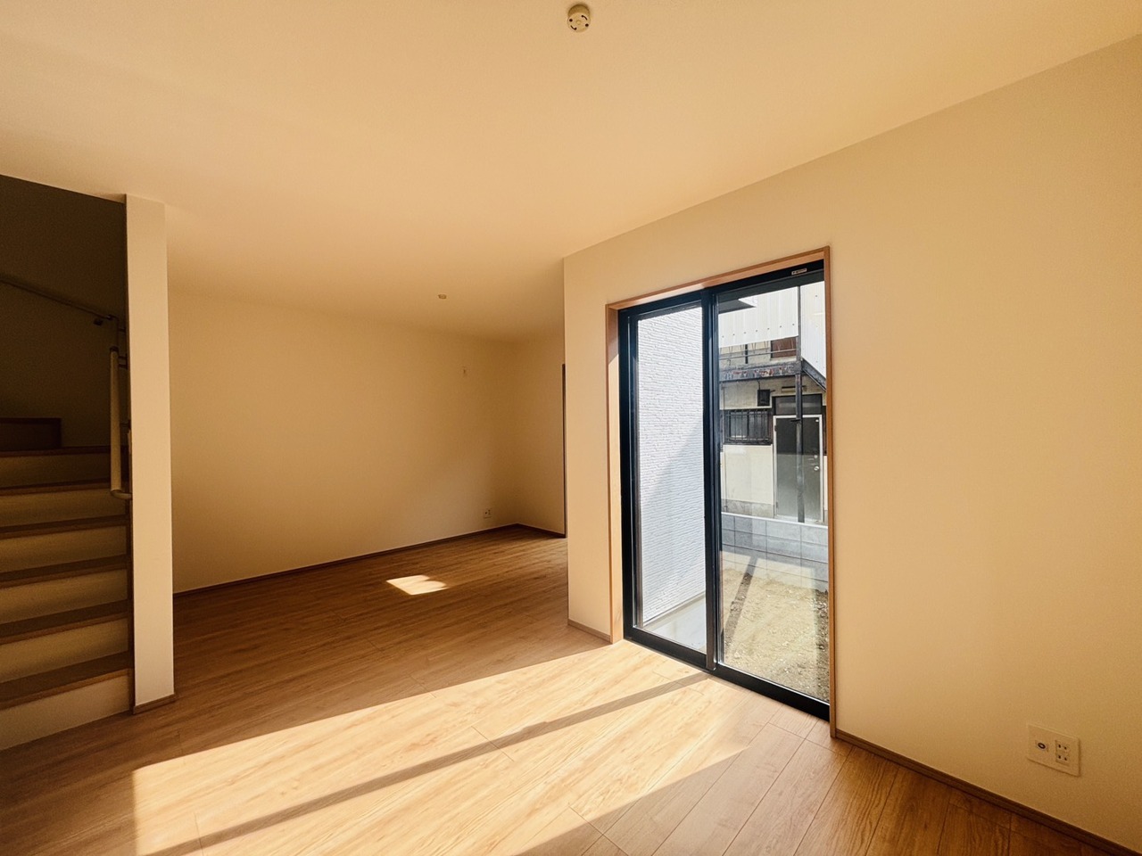大きな開口部から明るい光が差し込む、日中の室内の明るさがこの部屋の魅力です。