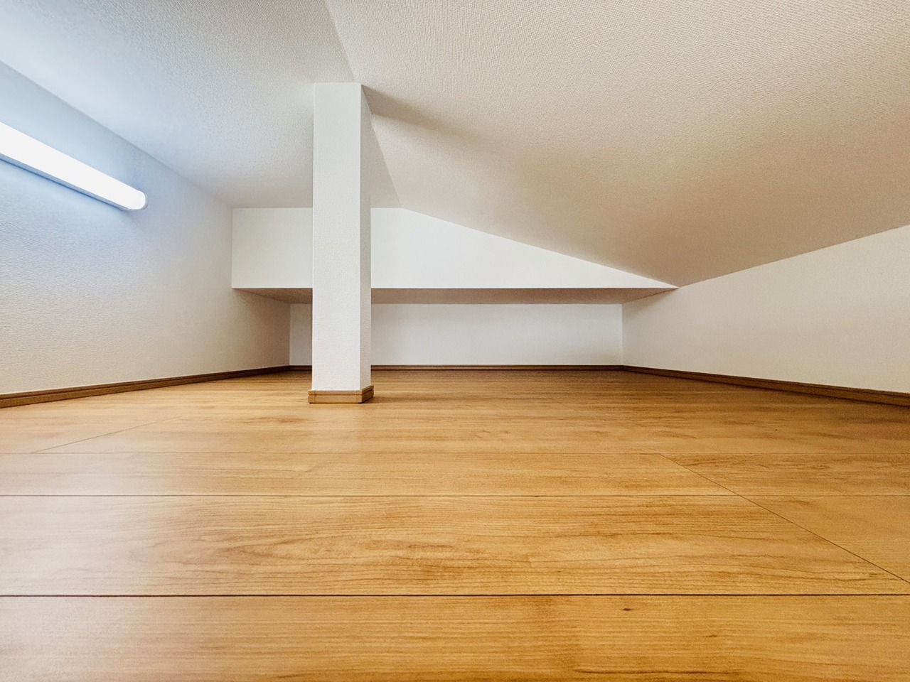 部屋の上部にはゆったりとしたロフトがありお子様のお楽しみスペースとしても収納スペースとして活用いただけけます。