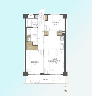 | 間取 | 2LDK (LDK13帖、洋室6.5帖、洋室4.5帖) | ||
