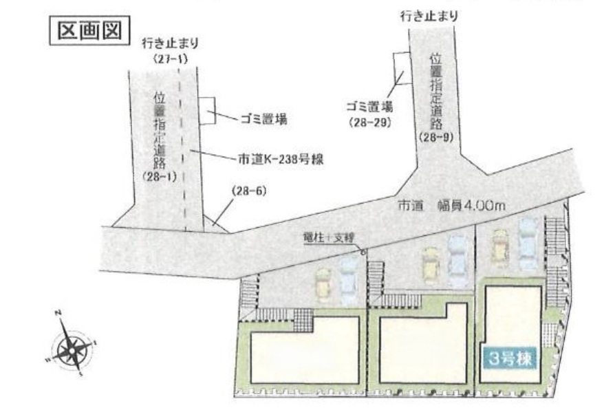| 備考・制限等 | 高度地区15メートル 準防災地域 さいたま市景観条例 景観法 文化保護法 西側位置指定道路の持分を各3/48ずつ取得し、持分につきましては、1から3号棟各1/48ずつとします。 東側位置指定道路の持分を各17/80取得し、持分につきましては、1から3号棟17/240ずつとします。 ゴミ置場の持分を6/40取得し、持分につきましては、1から3号棟各2/40ずつとします。 もう一つのゴミ置場の持分を3/29取得し、持分につきましては、1から3号棟各1/29ずつとします。 |