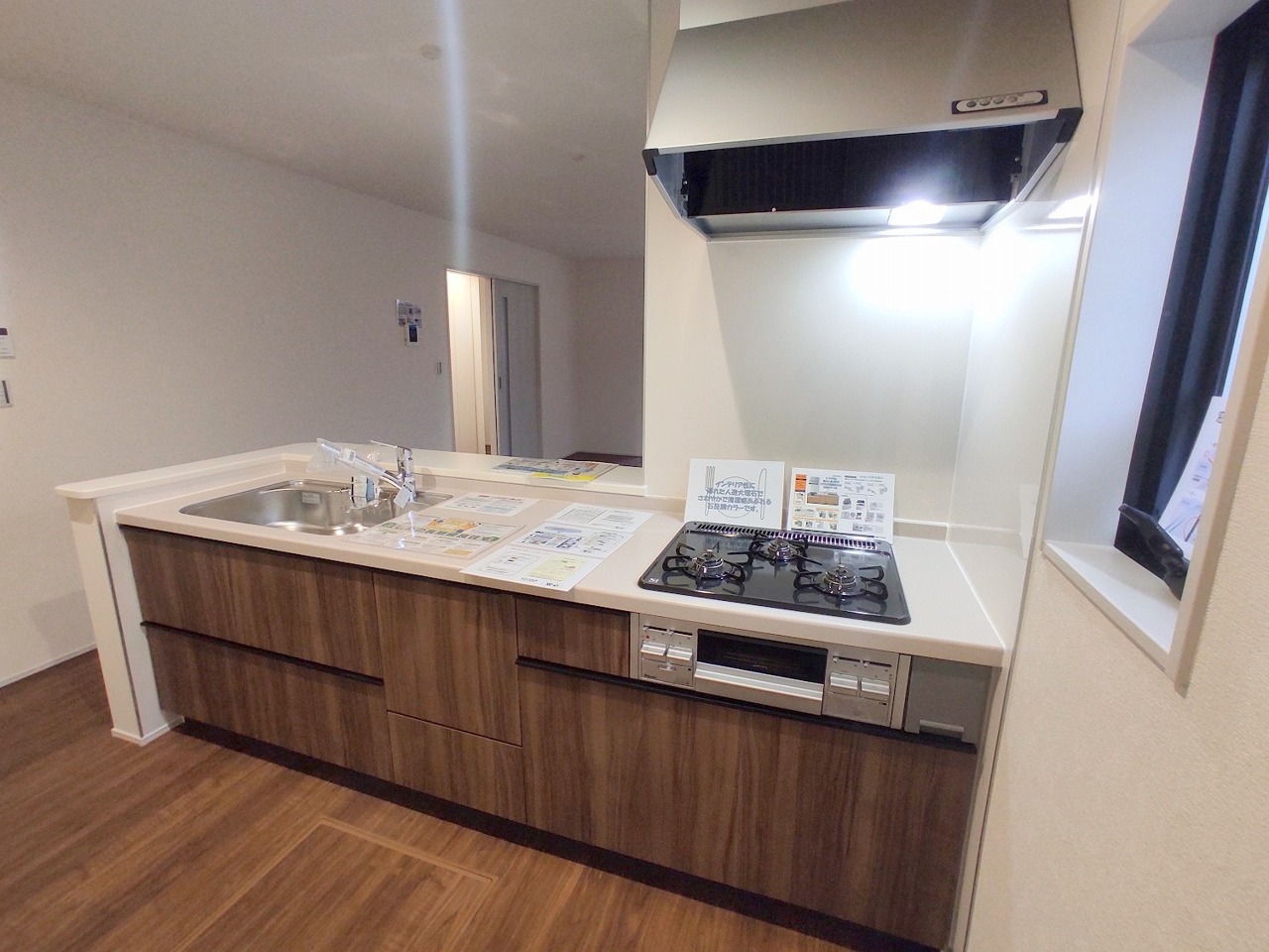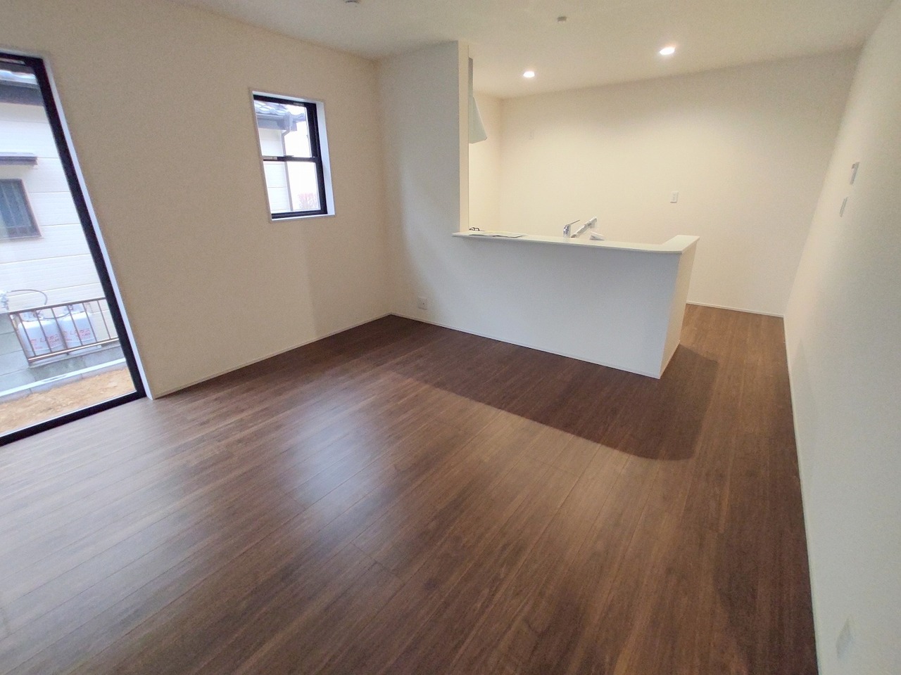 リビング空間とダイニング空間とか使い分けやすい間取り配置。対面式でキッチン立つ人の視界も良好です。
