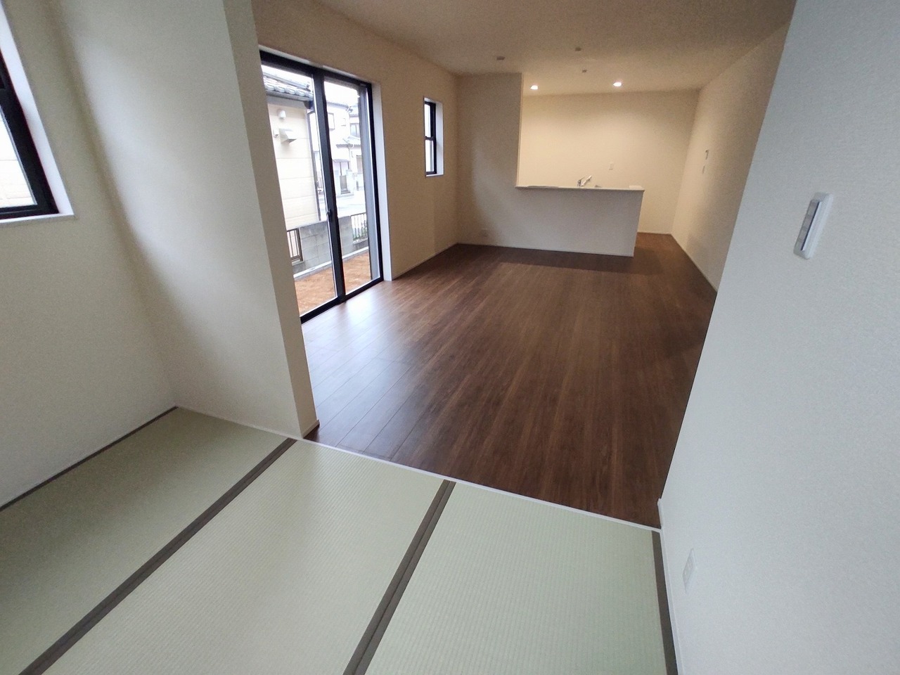 LDK+隣接和室、開放すれば広々空間に。おもてなしスペースにもどうぞ。