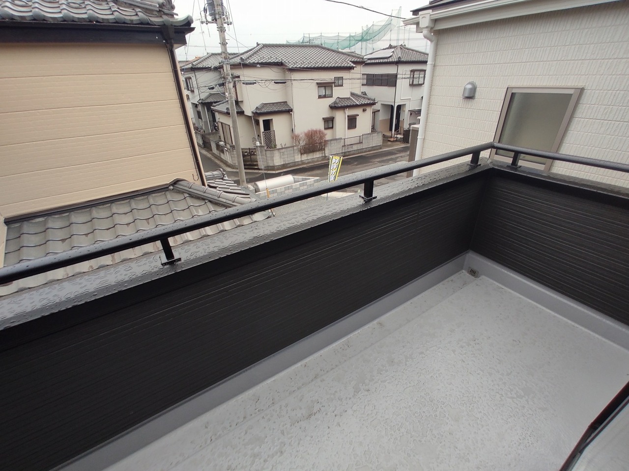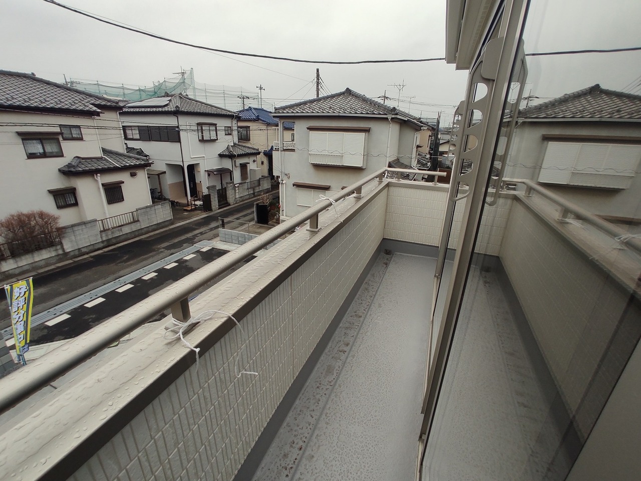 低層住居専用地域ならではのベランダの光景。辺りには高い建物がありません。